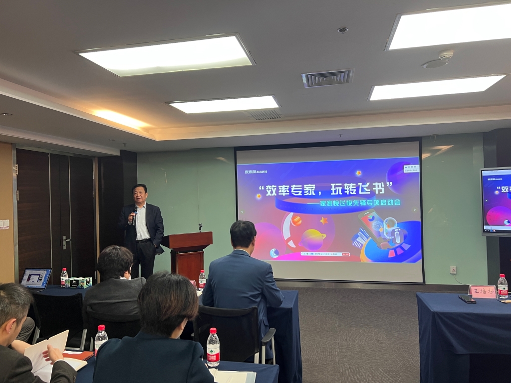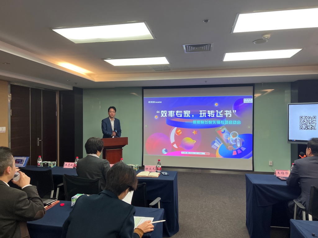 11月10日上午,集团“效率专家,玩转飞书”飞悦先锋专项启动会在威海集团总部举行。王董、集团高管、各部门负责人及飞悦先锋参加启动会。