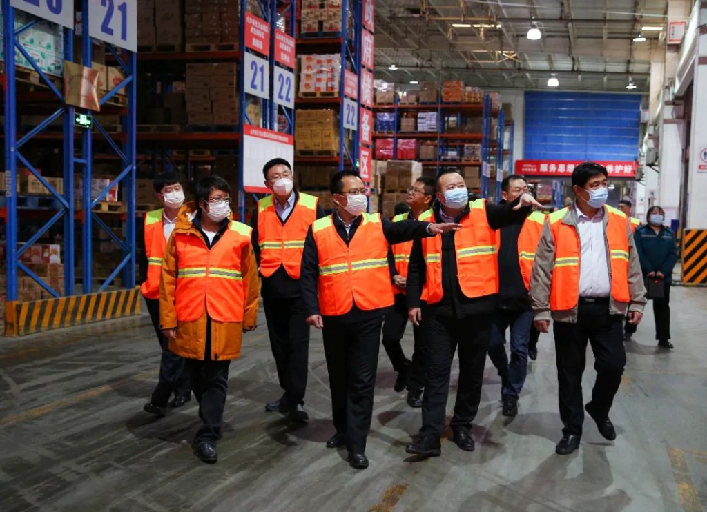 周宁副主席一行先后调研了家家悦云通科技、常温物流中心、威海配餐中心,听取了家家悦集团在物流信息共享、运输过程管理等方面的详细情况,实地察看了物流标准化、带板运输等方面的工作以及配餐中心食品加工情况,充分肯定了家家悦在冷链物流建设、食品安全方面所做的工作。