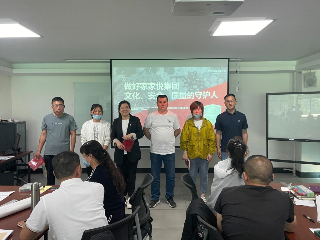 随着质量管理内容分享的结束,本次培训也接近了尾声。经过积分排名后,第五组获得了优秀小组。张海洋经理为优秀小组颁发了奖品。最后,在班长们齐声高喊“做好家家悦集团文化、安全、质量的守护人”的声音中,本次培训圆满的结束了。