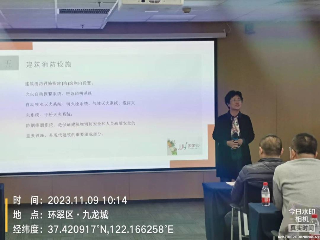 威海市建筑设计院陈纪华院长从消防设计角度,主要对建筑分类和耐火等级、防火分区、安全疏散、建筑构造、消防救援进行了系统讲解。孙丽副总从消防设施角度,主要对自动报警系统、自动水灭火系统、防排烟系统进行了专业讲解。