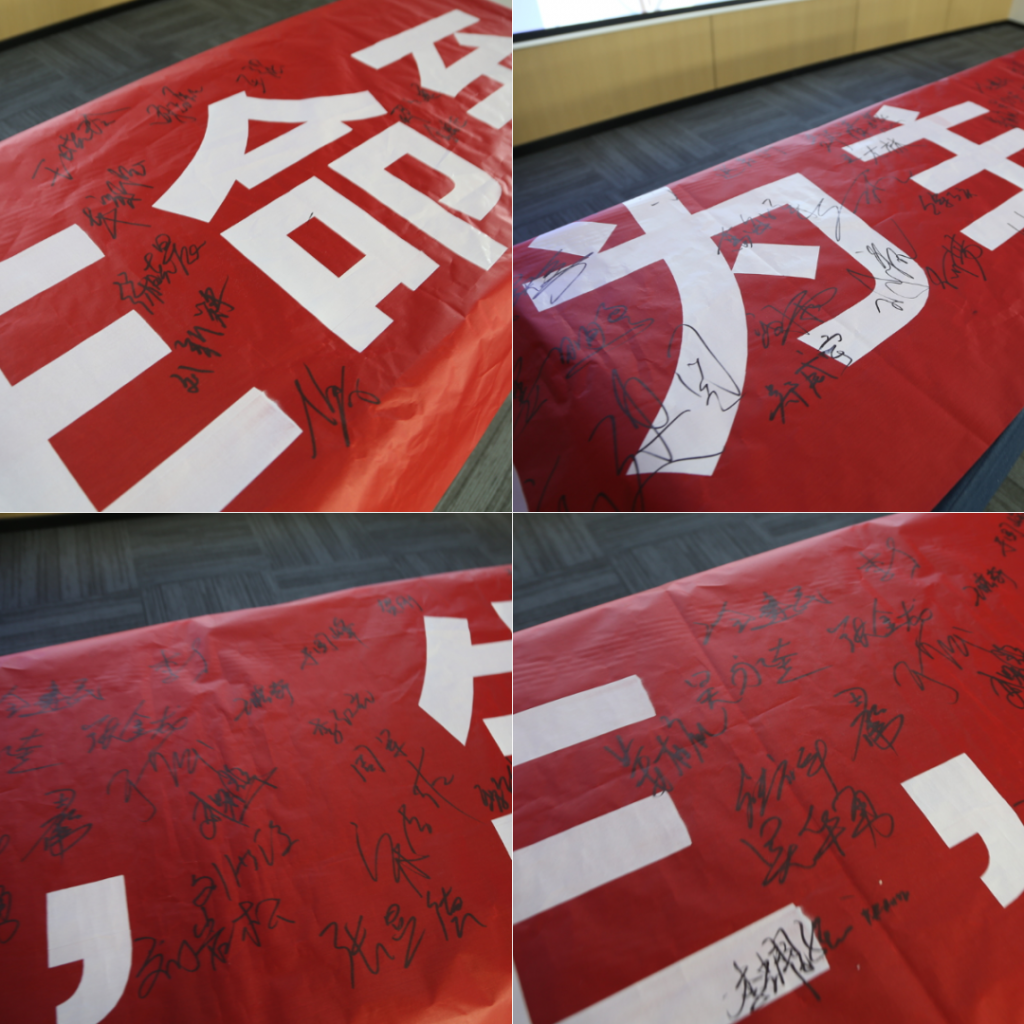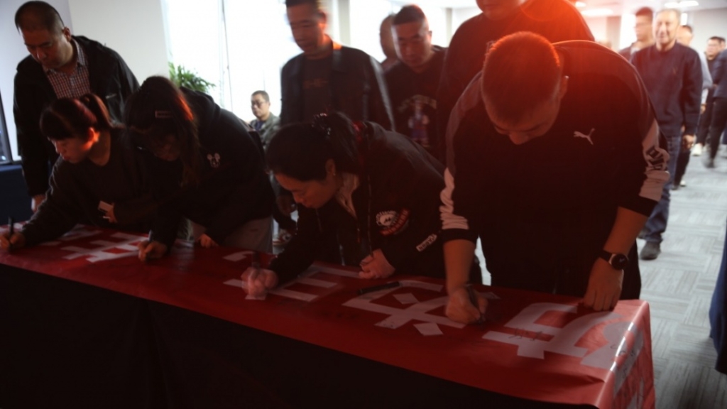 开班仪式上,所有学员陆续上台在横幅上签名,将“预防为主 生命至上”的誓言牢记心间。