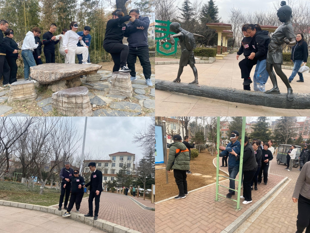 第一堂课:团队拓展活动—《风雨人生路》。各位店长需分别扮演“盲人”与“哑人”,彼此帮扶走完一段坎坷路。出发前,很多“盲人”伙伴能看出明显的紧张、不安,身边的“哑人”伙伴也在摸索该如何保护好他并顺利前行。随着活动进展,大家逐渐配合默契,大家以一颗设身处地为别人考虑的心,帮助身边的伙伴完成了旅途。