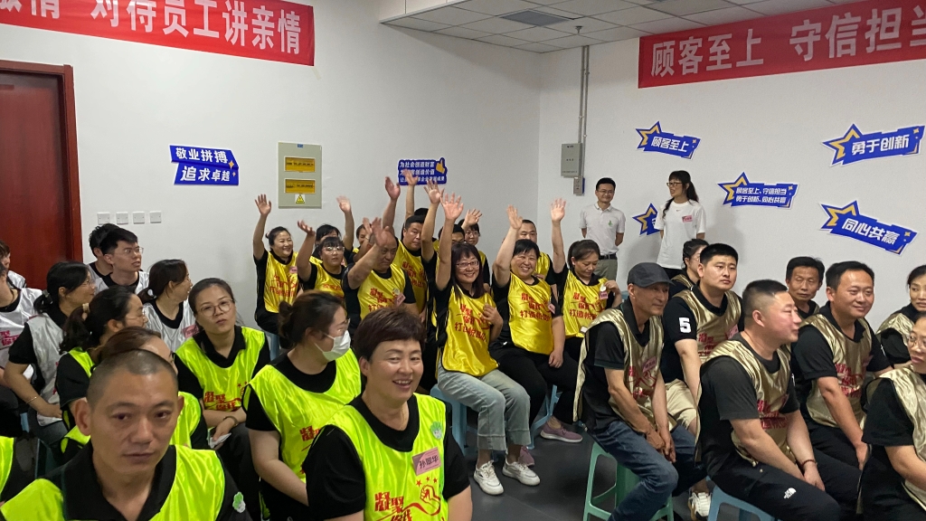 伴随着家家悦特有的口号“好,很好,非常好,越来越好,家家悦更好”,培训正式启航。百财、莓烦恼、明珠、鱼余、吉祥、玉蜀黍六个团队首先要选出自己的领头羊,在领头羊的带领下,确定团队的口号及队歌,并且带领团队所有成员进行团队展示。本次团建最大的挑战就是每个团队都有不少新员工,如何让新员工更快的融入团队,每位队长可以说使尽浑身解数。团队展示过程,我们虽然没有华丽的语言,没有精彩的才艺,但是我们有坚定的信念、如火的热情、爽朗的态度。