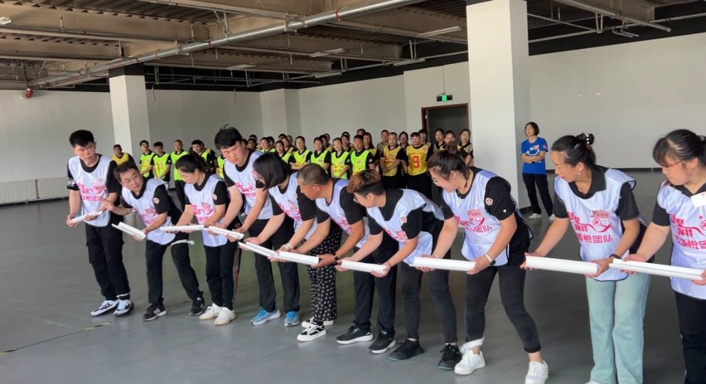 一句句“我们是最棒的团”振奋了团队的气势,“一圈到底”与“南水北调”促进了团队合作意识,凝聚团队力量,“两人三足”激发了相互配合,彼此鼓励,增进了团队信心。坚持不懈,锲而不舍,成功在失败中诞生,效率在练习中提升。