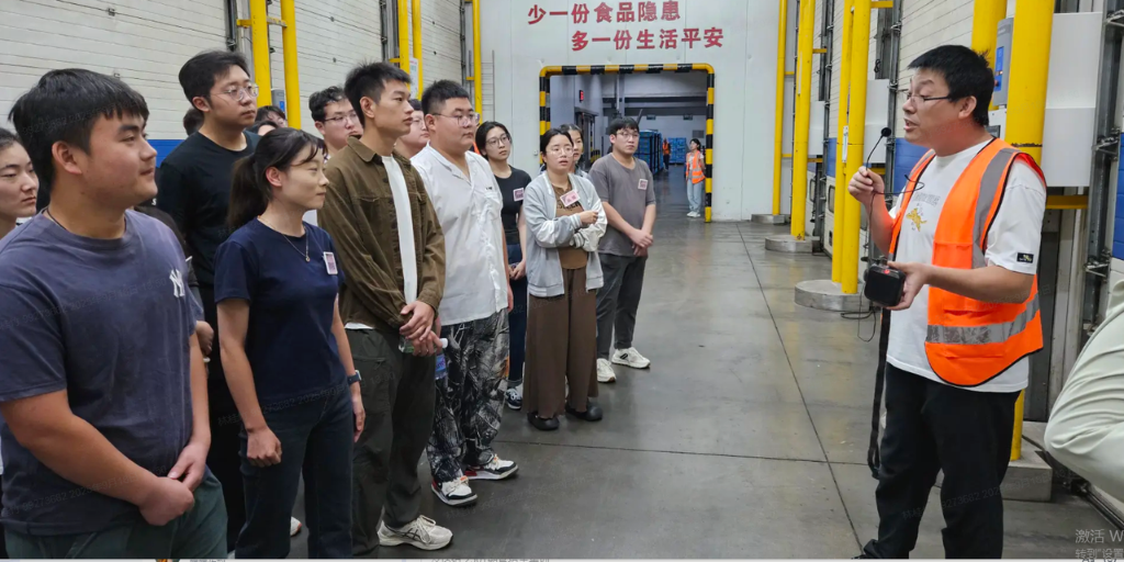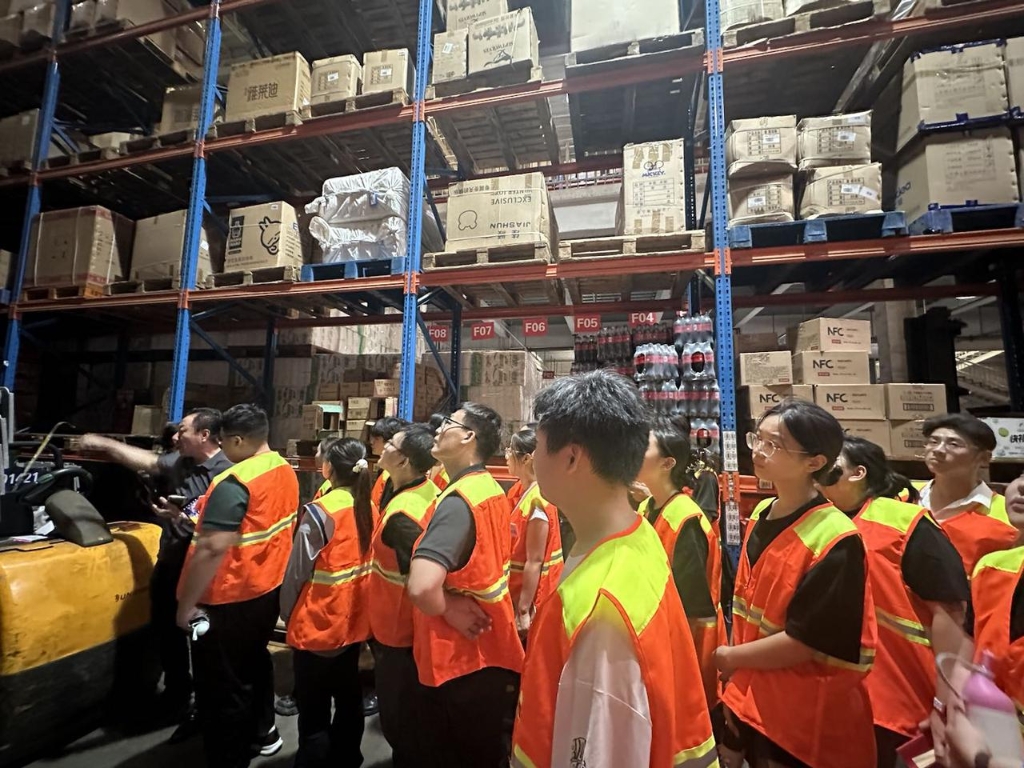 常温物流中心内,大家手持 RF 枪实操 “收货 - 拣货 - 出库” 全流程;中央配餐中心里,从生产工艺的标准化操作,到商品陈列与销售标准的学习;宋村生鲜物流园展现了生鲜 “分区存储-催熟车间 - 冷链配送” ;荣成工业园则呈现了从植物油从油库到灌装出库的流程,让管培生们深刻体会到集团供应链的强大。