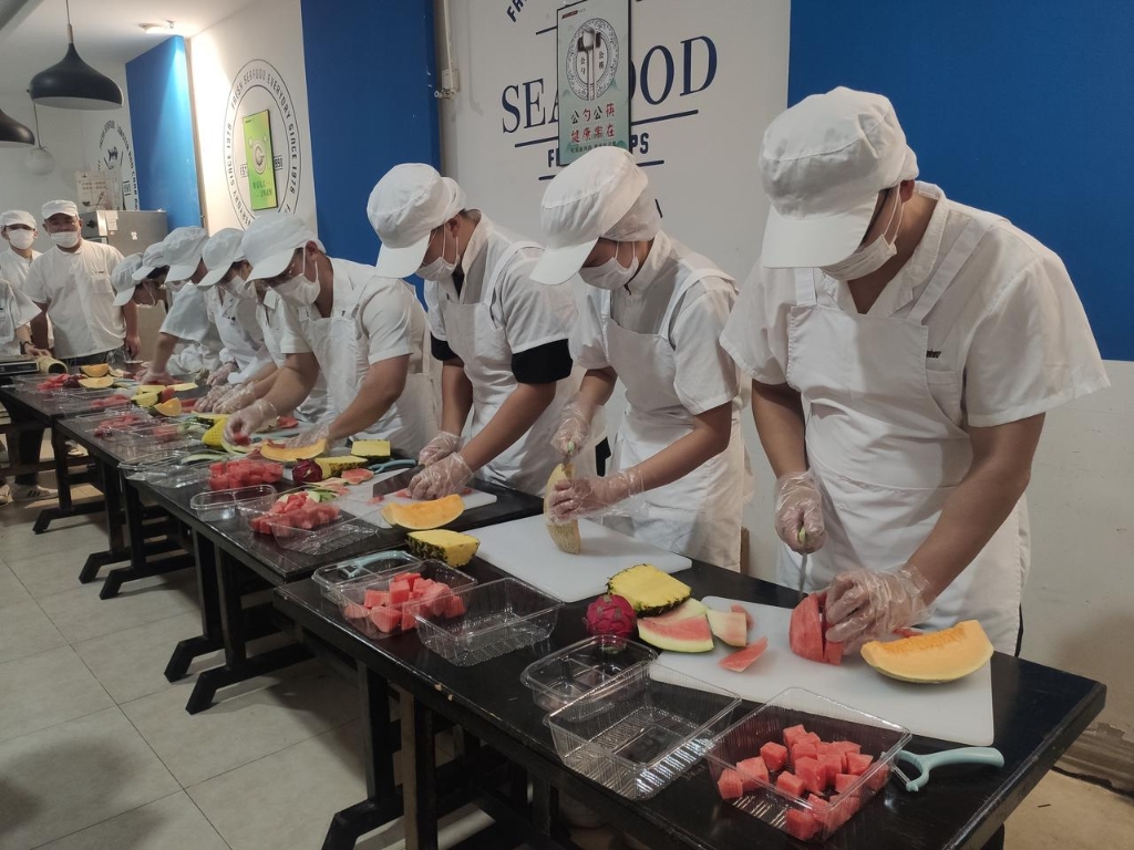来自总部、威海大区、烟台大区的同学同台竞技,围绕着熟食、面食、寿司、果切等技工技能,检验大家平时工作中的技能学习成果。
