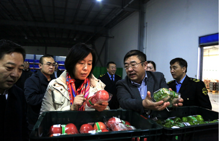 11月28日,山东省食品药品监督管理局流通处处长王蕊和省17地市分管流通负责人一行就食品流通情况视察了家家悦超市威海九龙城店、家家悦威海配餐中心及家家悦宋村生鲜加工物流中心。