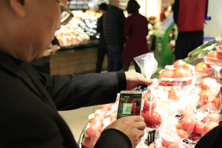 在九龙城精品超市,代表们重点参观了海产、肉禽、蔬菜等生鲜商品在销售环节的流通建设情况,代表们通过现场体验,了解到消费者在购买商品的过程当中,可以通过手机扫描商品二维码和门店查询机两种方式,了解所购买产品的相关追溯信息,做到放心购买,明白消费。