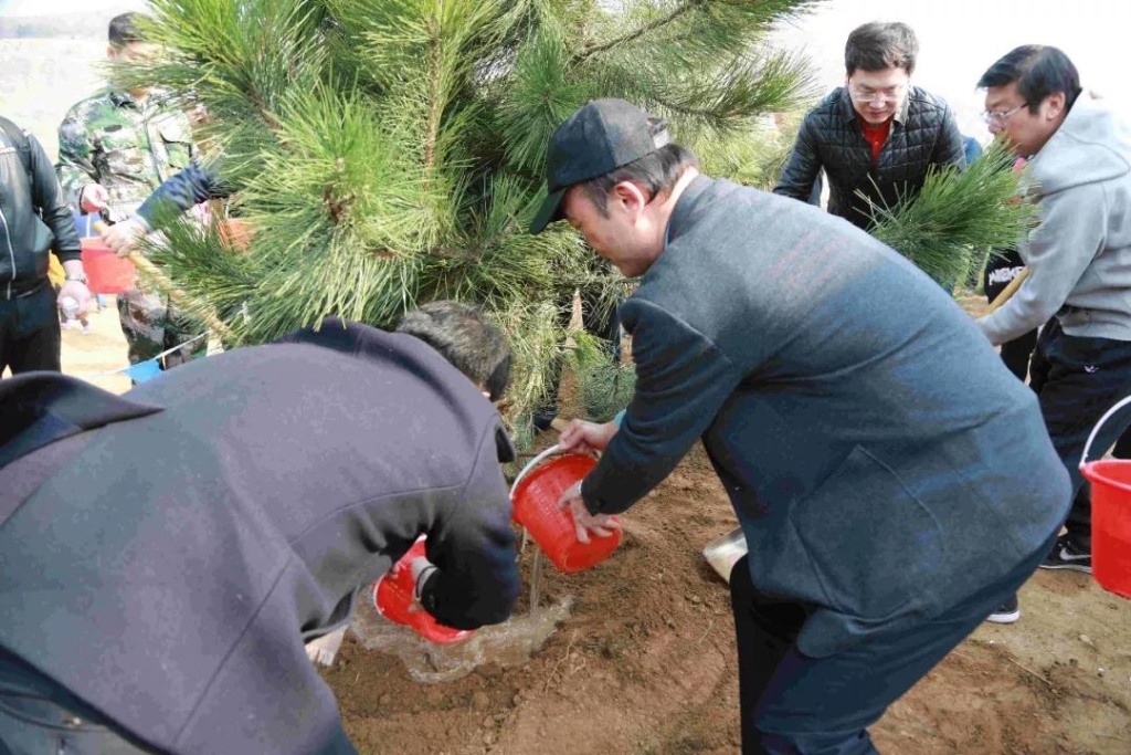 上午9点,满载着植树志愿者的大巴到达温泉镇林家院村植树地点,环翠区政府、家家悦、九龙城、清风的领导共同种下了一颗希望之树。