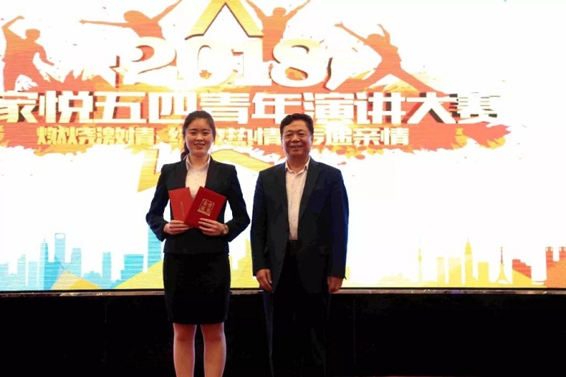 5月8日,以“燃烧激情、释放热情、传递亲情”为主题的家家悦集团2018“五四”青年演讲比赛暨青年职业技能大赛颁奖仪式在九龙晟大酒店举行,来自超市、物流、工厂、百货、酒店、宝宝悦、总部等各区域的900余名青年职工参加了此次活动,共青团威海市委常委、组宣部部长李淼,家家悦集团董事长王培桓,集团副总经理郝芸,集团副总经理李美,集团团委书记、人力资源总监毕美云出席本次活动。