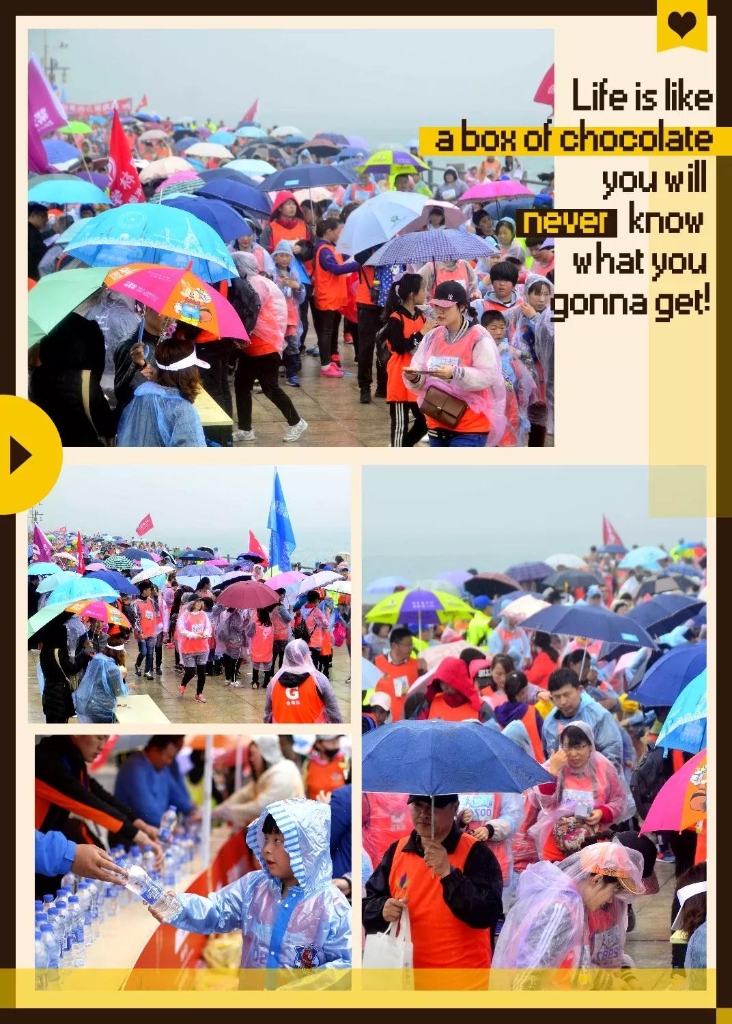 今天的活动开始不久后,天空中便飘起了雨点,但大家的热情丝毫不减,而是拿出活动主办方提前为选手们准备的雨披披在身上,继续行进,向着终点一步步迈进;更有部分参赛者则直接在雨中漫步,享受不一样的乐趣。