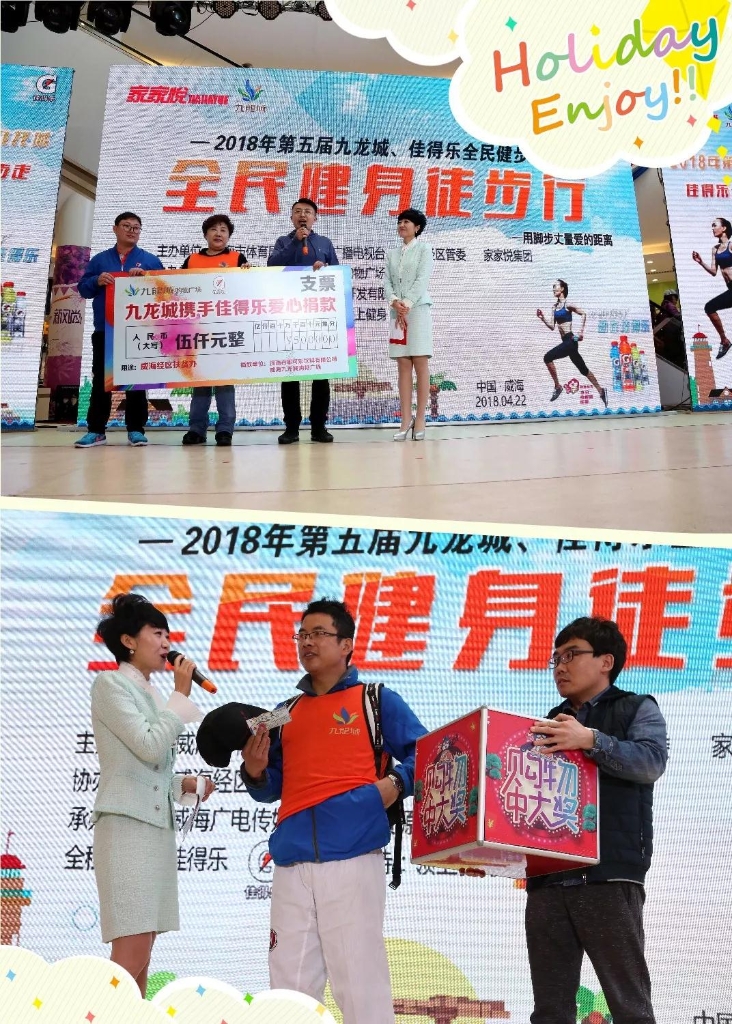 家家悦集团作为威海市零售业的龙头企业,积极履行社会责任,从2014年开始,这已经是家家悦集团举办的第五届全民健步走活动,与以往不同,今年的健步走以“你走步,我捐款,用脚步丈量爱的距离”为口号,在活动中增添了很多公益的环节,既有泡泡秀、风车海、风筝园等有趣活动,也有联合威海市经区扶贫办走步捐款活动,据了解本次活动家家悦携手佳得乐共募得款项5000元,将全部捐赠至威海市经区扶贫办,用于扶贫事业。