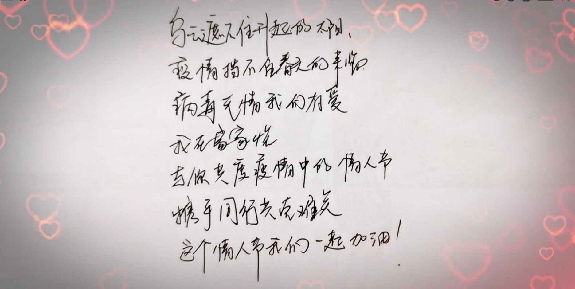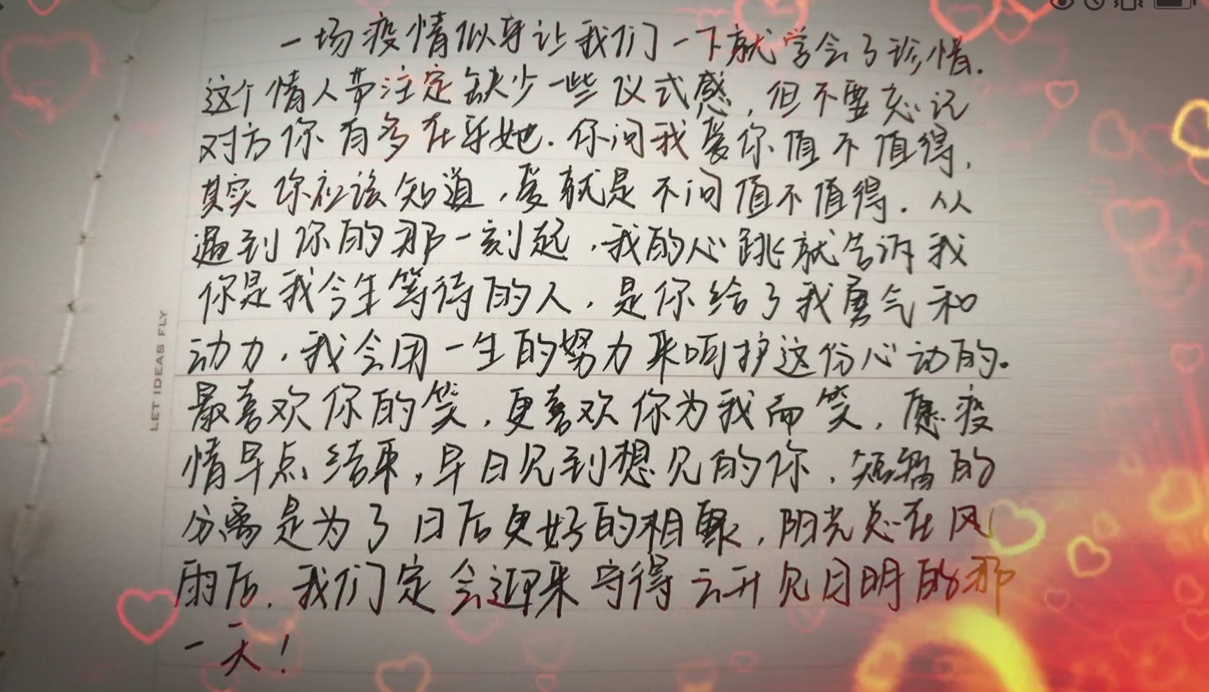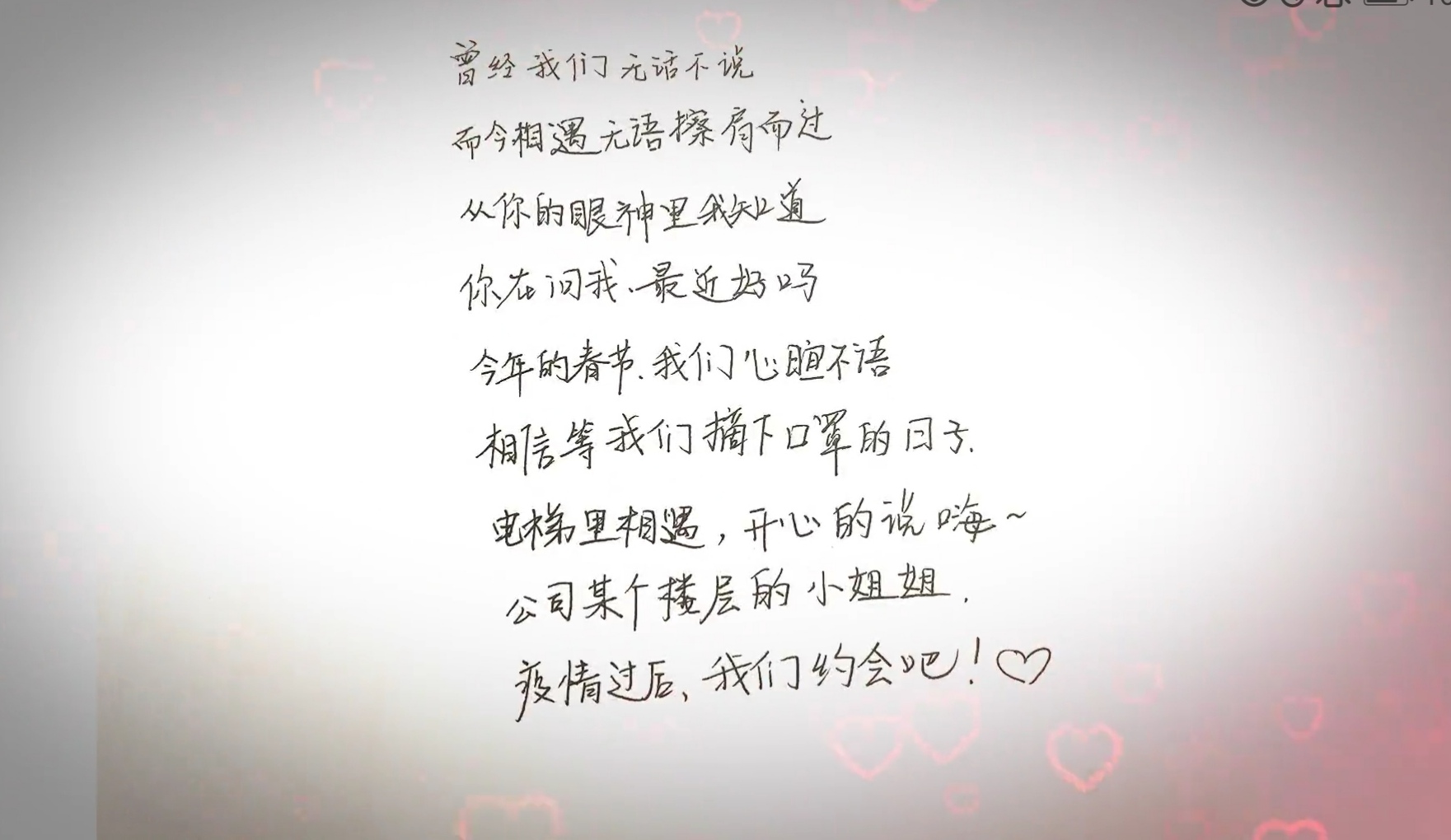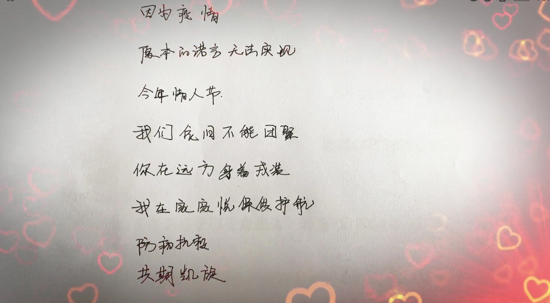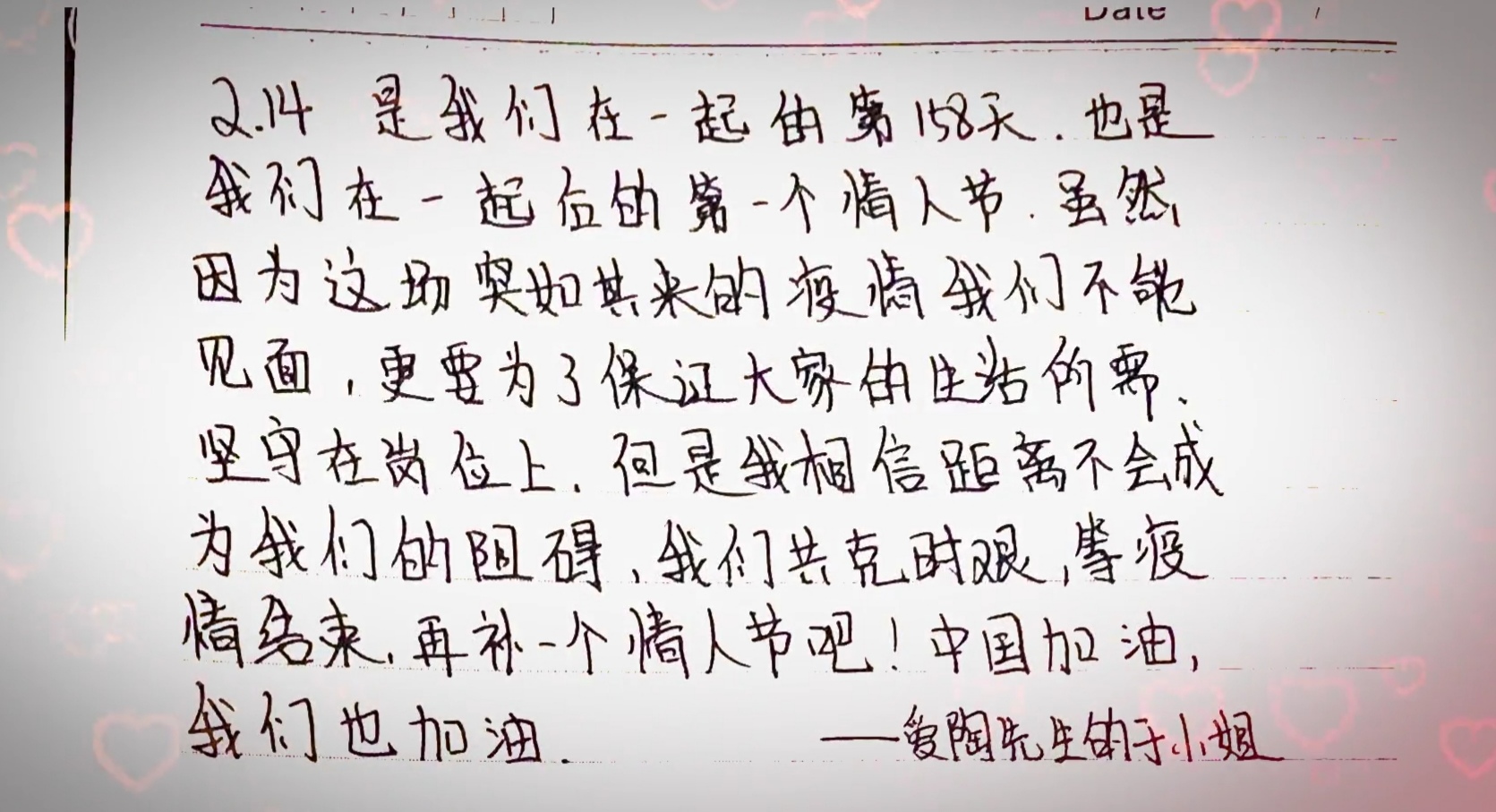 相识半载,即将迎来我们一起过的第一个情人节。原本我精心策划的为你准备的惊喜眼看着就要被搁浅。疫情当头,你选择了自告奋勇冲上了超市一线。很担心你的安危,你却告诉我这是你的责任,我能理解你但我不情愿。