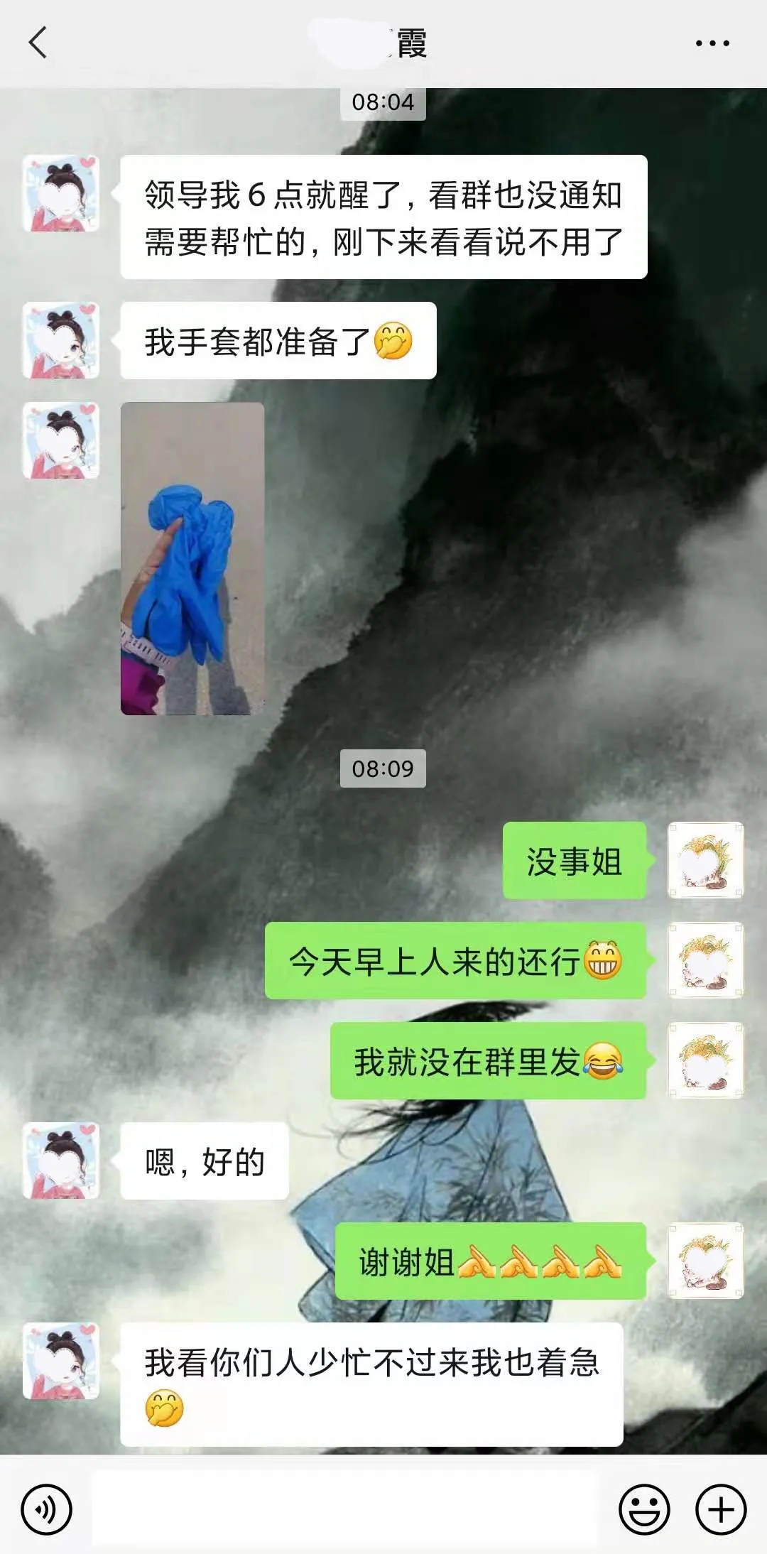 “还需要帮忙吗?我手套都准备好了,看你们人少忙不过来我也着急”。这是一位顾客在微信群里的留言,简单的话语传达着最朴实的爱。