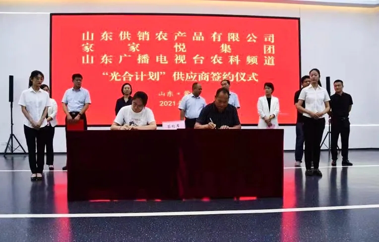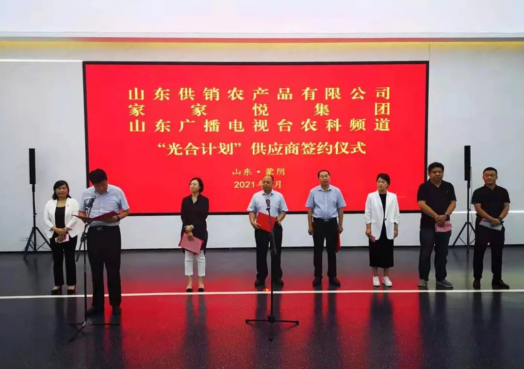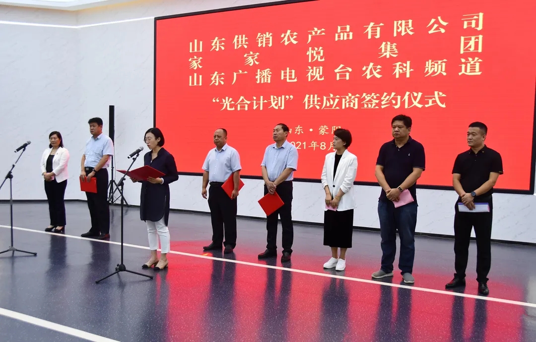 为进一步发挥企业龙头示范带动作用,助力山东省乡村振兴建设,8月24日,家家悦集团股份有限公司与蒙阴县农产品基地合作签约仪式在蒙阴县农业科创中心举行,蒙阴县人民政府副县长公茂栋,山东供销农产品有限公司总经理赵立国,蒙阴县供销合作社联合社主任公茂凤,家家悦集团副总经理、生鲜事业部总经理李美和山东广播电视台融媒运营部主任宋红闯,中国原产递总经理陈瑞英出席签约仪式。