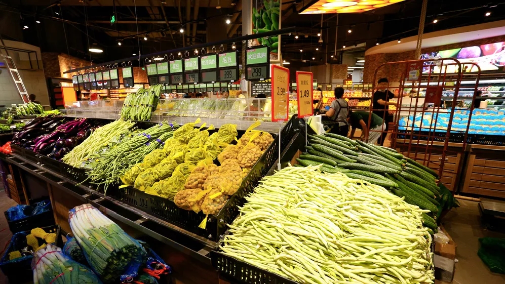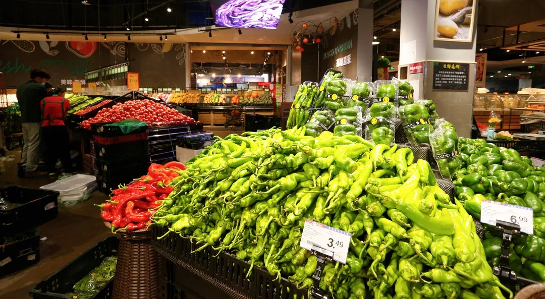 周边办公楼林立,高尖精人才汇聚 为了服务好周边的消费者 这家超市和以往有着大大的不同 让小悦一一给你说道说道 要想日子过得好,蔬菜瓜果不能少 这里有超大范围的果蔬区 能赶上一个篮球场 采自全国各地的时令蔬菜 还有天南海北、飘洋过海而来的新鲜瓜果