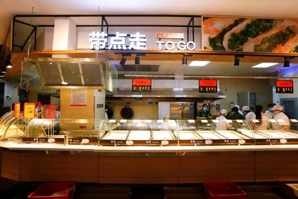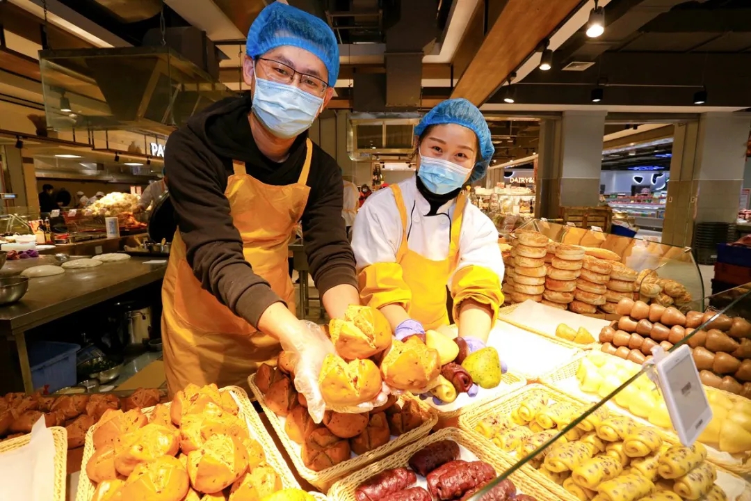 透明玻璃可以看到面点熟食师傅们忙碌的身影