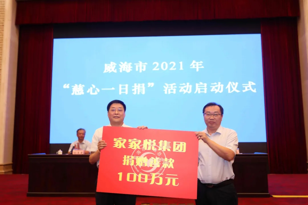 “慈心一日捐”活动是经省政府批准、全省联动每年开展一次的善款募集活动,威海市2021年“慈心一日捐”活动主题为:“携手慈善、共创和谐”。家家悦集团现场捐赠100万元,再一次展示了企业的责任与担当。
