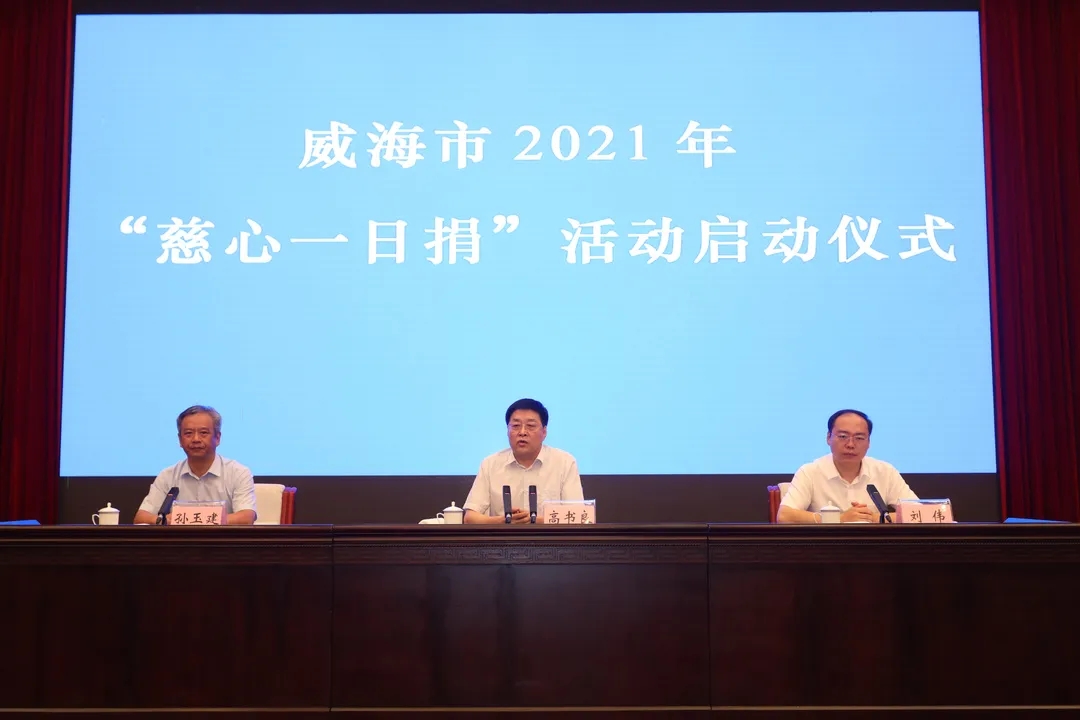 9月13日,威海市2021年“慈心一日捐”活动启动仪式在东山宾馆举行。威海市政府副市长、市慈善总会会长高书良,市政府副秘书长刘伟,市民政局党组书记、局长、市慈善总会常务副会长孙玉建,市直有关部门单位负责人、爱心企业代表参加仪式。