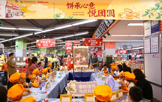中秋节作为中国第二大传统节日,承载着千百年来“阖家团圆”的文化内涵。为弘扬传统习俗,家家悦集团9月27日策划了“饼承心意·悦团圆”中秋节主题活动,在威海宜家花园店主会场及荣成政府广场、威海W37分会场同步启动。活动以互动体验为核心,通过月饼DIY、灯笼制作、投壶、蒙眼喂月饼等环节,为家庭提供沉浸式节日文化体验。