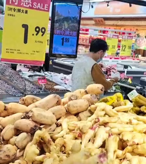 此次家家悦首批收购受灾鲜姜达 100 余吨,目前,这些经过整理、清洗、分拣环节的大姜,在完成品质把控后已经陆续运抵家家悦各门店。