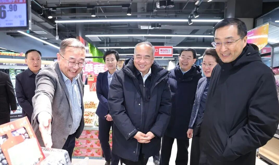 2025年12月31日,省委书记林武深入家家悦超市济南金玺广场店,实地调研“两节”期间市场供应情况,察看肉蛋粮油、果蔬等民生商品供应销售情况,与前来购物的市民亲切交流,了解济南市提振消费工作情况,对民生保障工作提出明确要求。他强调要加强货源组织,做好产销衔接,加强市场监管,保持物价稳定,让老百姓购物更安心、更方便。要扩大优质商品和服务供给,创新多元消费场景,激发假期消费潜力,丰富群众精神文化生活。