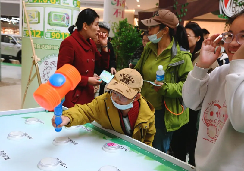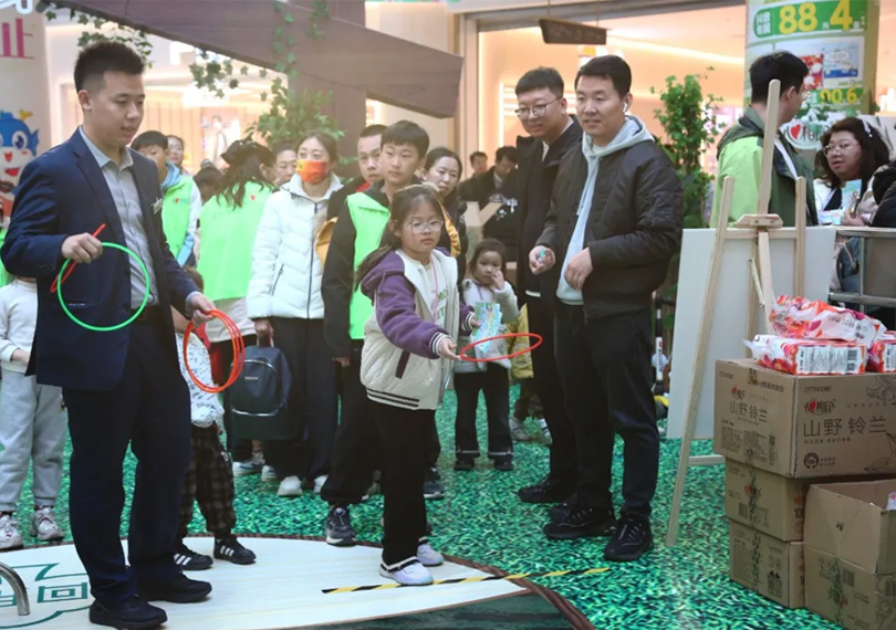 植树活动结束后,全体参与者返回由威海九龙城精心布置的主场——九龙城购物广场中庭,开启精彩纷呈的互动狂欢盛典。作为活动的“总导演”,九龙城充分发挥商业运营的强项,精心筹备了多样化的互动游戏,让大家在轻松愉悦的氛围中延续公益热情;现场还有精彩的文艺演出轮番上演,歌声、掌声、欢笑声交织在一起,氛围感拉满。